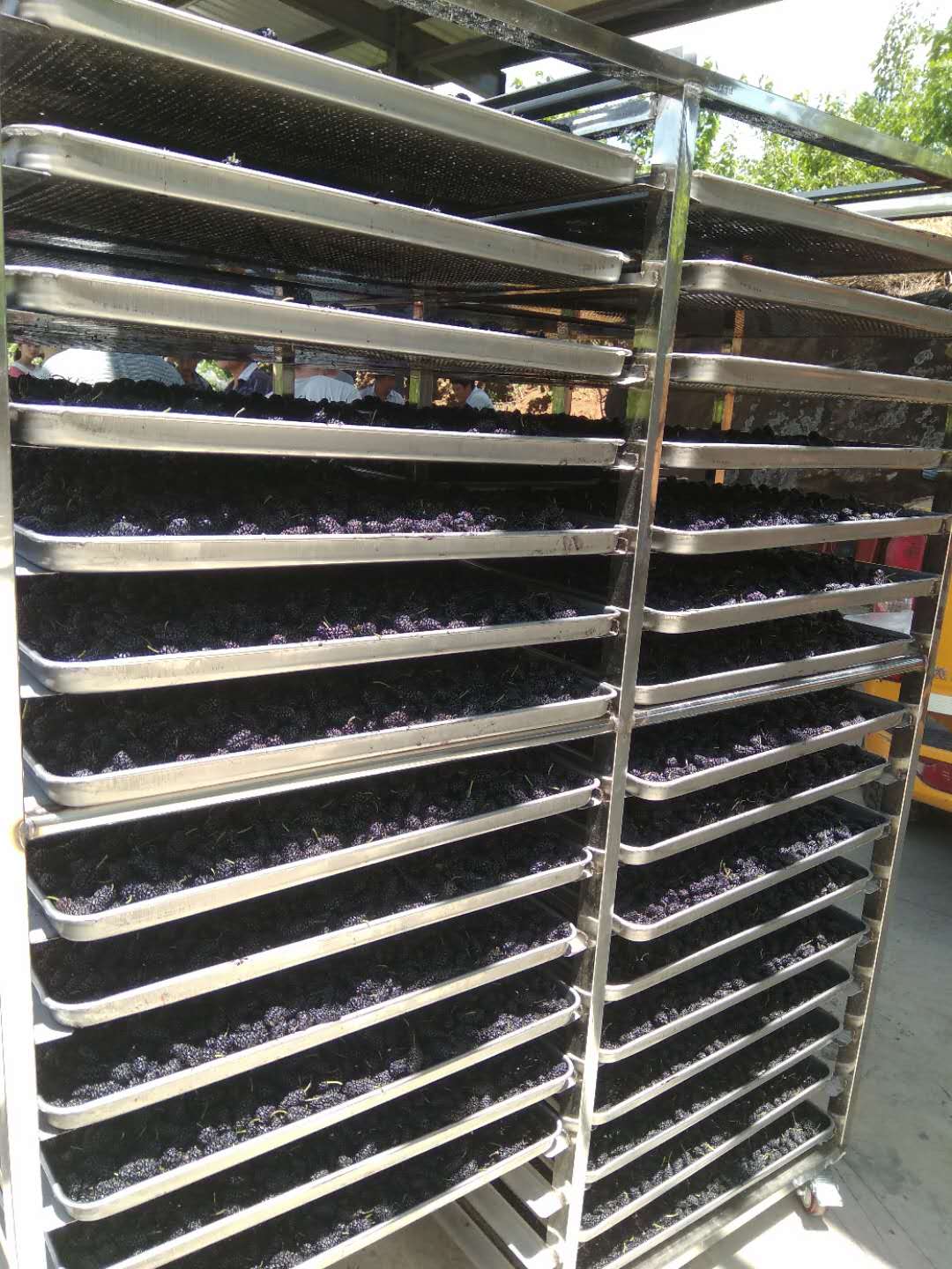 桑葚又叫桑果、桑泡兒,農(nóng)人喜歡其成熟的鮮果食用,味甜汁多,是人們常食的水果之一。成熟的桑葚質(zhì)油潤(rùn),酸甜適口,以個(gè)大、肉厚、色紫紅、糖分足者為佳。桑葚成熟期在每年4-6月,采收后,去雜質(zhì),曬干或略蒸后曬干作貯存食用。開(kāi)發(fā)桑葚深加工食品,既可豐富食品品種,又可滿足健康消費(fèi)需求。桑葚加工食品很多,桑葚果干就是其中之一。桑葚烘干后,是非常好藥物,具有補(bǔ)益肝腎,滋陰養(yǎng)血,息風(fēng)等作用,更具有主治心悸失眠、頭暈?zāi)垦?、耳鳴、便秘盜汗、瘰疬、關(guān)節(jié)不利等病癥。大批量桑葚果干烘干制作需要用到桑葚烘干機(jī)。桑葚的加工因其糖度高,顆粒差異大,對(duì)溫度和風(fēng)量的均勻要求性高。溫度如果把控不好,則桑甚偏軟,不干身。風(fēng)量不夠,則干燥時(shí)間長(zhǎng),而影響品質(zhì)。